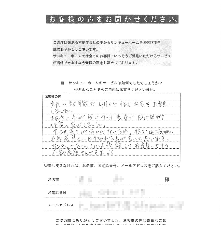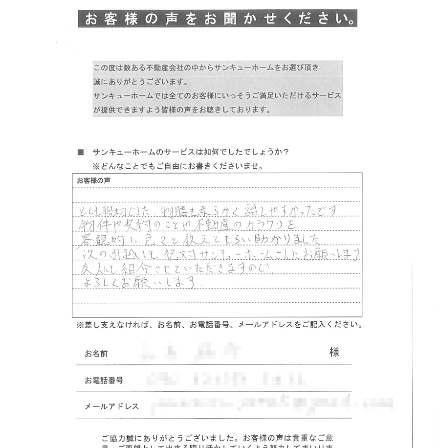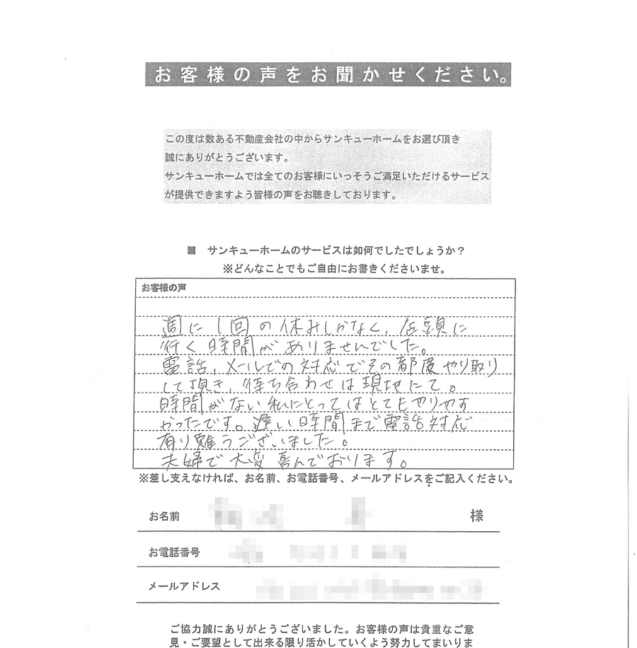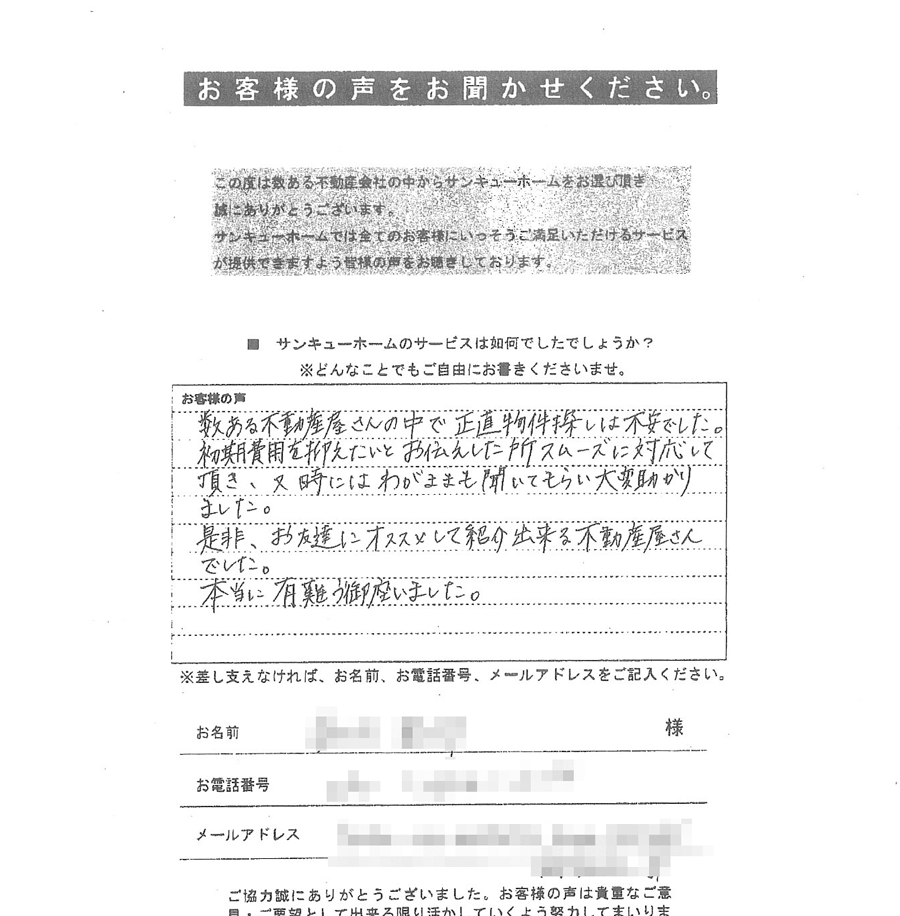 たまたまサンキューホームさんのホームページを見つけお問い合わせいたしました。